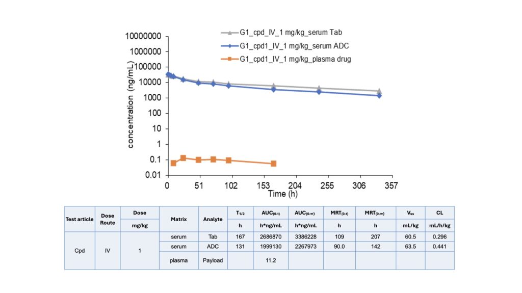- Analytes: ADC and total antibody (ELISA), plus payload (LC-MS/MS)