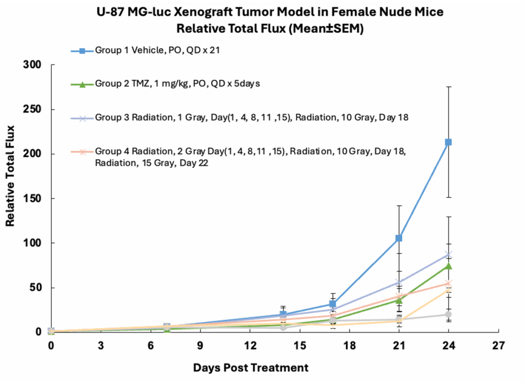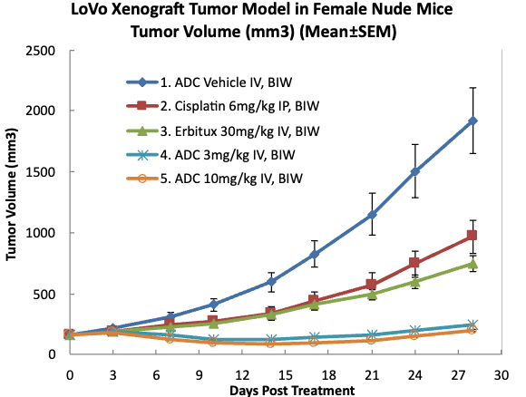 - Parental tumors showed strong sensitivity with 93.72% TGI at Day 20 and %T/C = 6.22