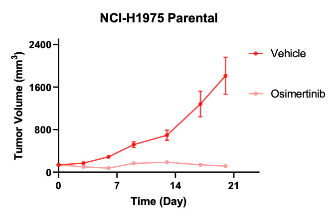 - Cell Implantation: NCI-H1975 parental and resistant cells, 2 × 10⁶ cells/mouse, right flank